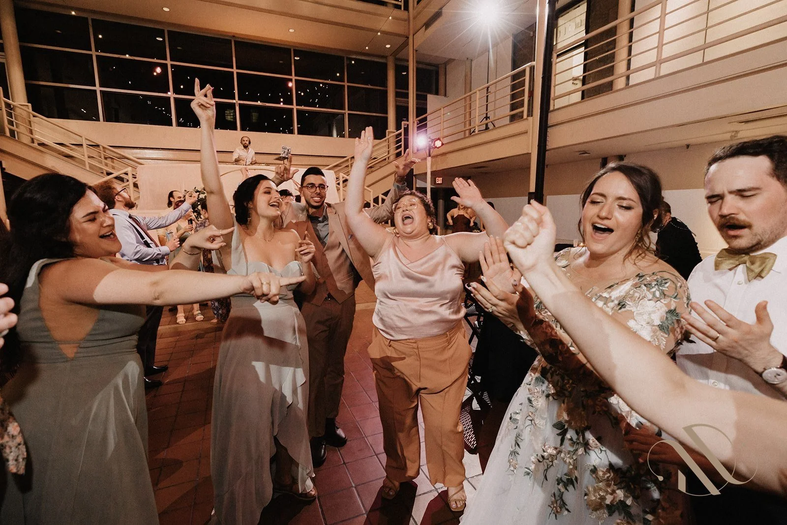 Since Alexa is a University of the Arts Alumni, she booked the event and lobby space in Hamilton Hall for her wedding— a former UArts building situated right on broad street. There are gorgeous high, glass ceilings and a picturesque courtyard for photos. While it is no longer rentable (RIP UArts) it was the perfect setting for Alexa and Nathan’s Wedding Day.